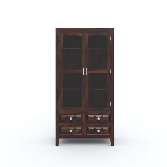 Dimensions:Height: 172 cm | Width: 43.2 cm | Depth: 101.6 cm Material: Primary: Solid Sheesham Wood – known for its strength, durability, and rich natural grain Secondary: Plywood – used for enhanced structural support Sturdy & Durable:Crafted from high-quality Sheesham wood, this crockery cabinet offers exceptional stability and long-lasting performance....