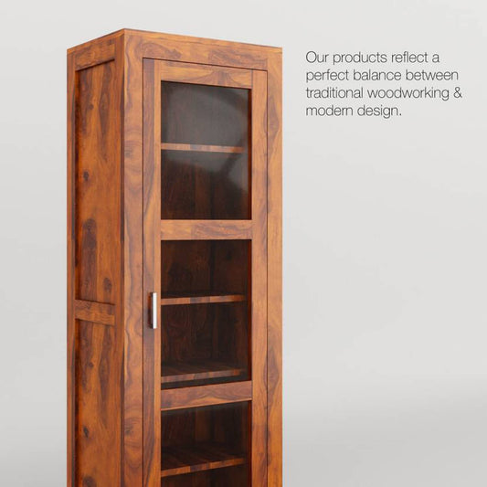 The cabinet’s spacious interior is thoughtfully designed to store a wide range of crockery items, including plates, glasses, bowls, and more, allowing for efficient organization of your dining essentials. Dimensions:Length: 28 inches | Width: 14 inches | Height: 58 inches Material & Finish:Crafted from durable Sheesham wood with a rich...