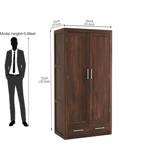 Dimensions: 36 L x 22 W x 72 H (in inches)Primary Material: Solid Sheesham WoodFinish: Honey FinishModel: 2-Door Wooden Almirah for Clothes Elevate your bedroom storage with this beautifully crafted 2-Door Sheesham Wood Wardrobe. Made from premium solid Sheesham wood and finished in a warm honey tone, this almirah showcases...