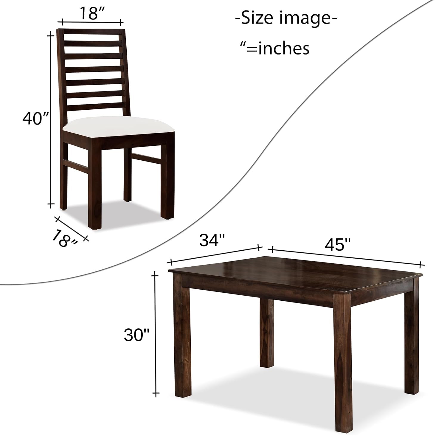 Dining Table: Length – 45 in | Width – 34 in | Height – 30 in