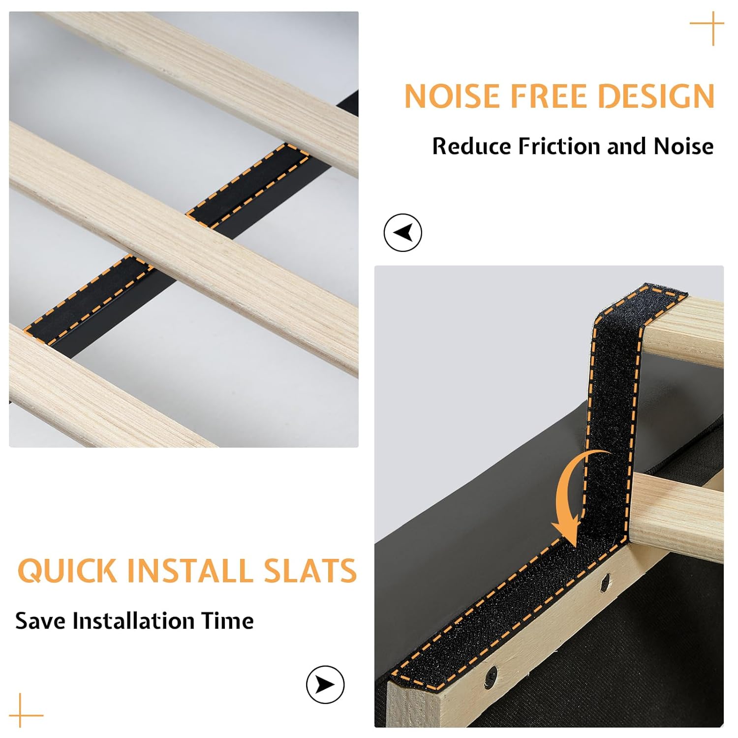 Crafted with a kiln-dried solid hardwood frame reinforced by 12-layer plywood, this bed frame offers superior strength and long-lasting support. The bolt-on rail design ensures all metal slats are securely fixed in place for added stability.