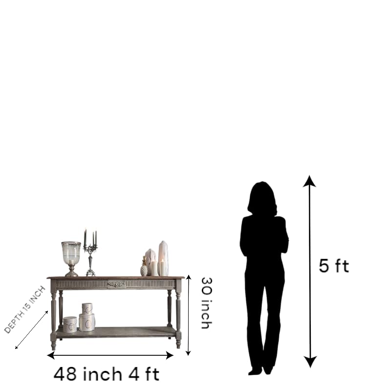 Bring classic elegance and artisan detail to your home with this beautifully hand-carved wooden console table, designed to complement a variety of interior styles from farmhouse to traditional. The grey...
